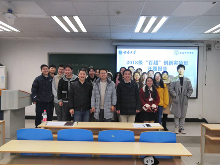 1225日下午15:30-18:002018级百超班同学创新实验开题报告在32教学楼204205教室顺利举行。本次开题报告邀请钟耕老师、曾凡坤老师、索化夷老师、叶发银老师、覃小丽老师、郑炯老师六位老师担任评委,2018级百超班班主任付余老师和全体21位同学及其他班级部分同学参加。