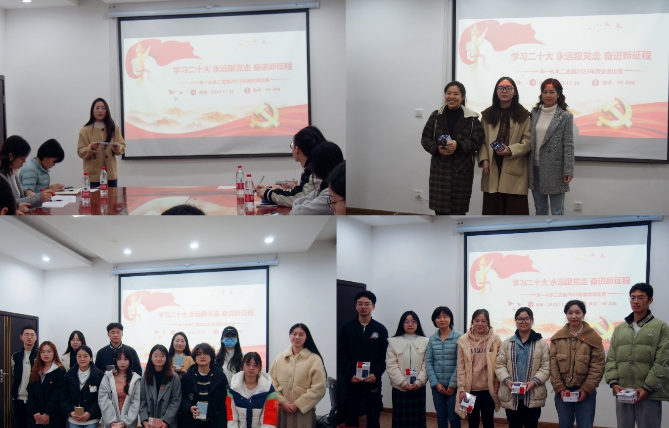 为深入学习贯彻落实党的二十大精神,调动党员同志理论学习积极性。2023年11月30日,本科生第一、第二党支部在40教206会议室联合开展微党课比赛。此次活动以“学习二十大 永远跟党走 奋进新征程”为主题,博牛社区