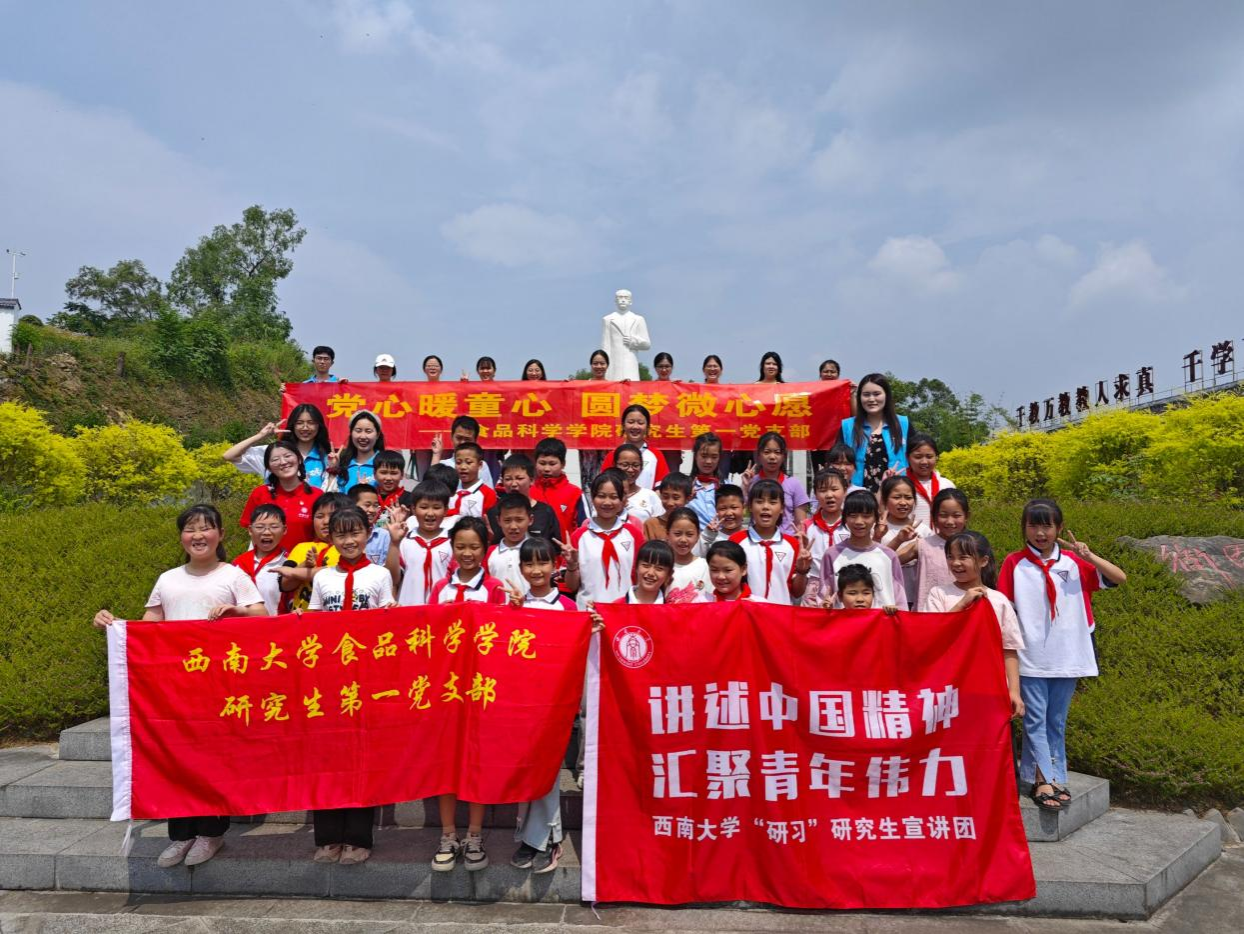研究生党支部携手西南大学党史学习教育研究生宣讲团于5月27日赴合川区育才学校举办“党心暖童心,圆梦微心愿”主题党日示范观摩活动。博牛社区