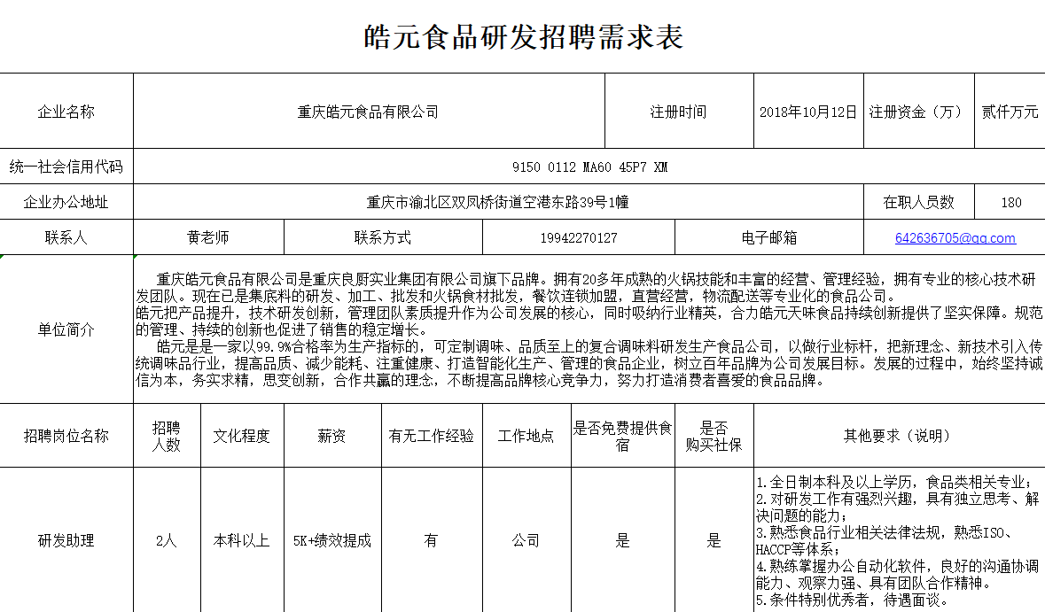 皓元食品研发招聘来啦
