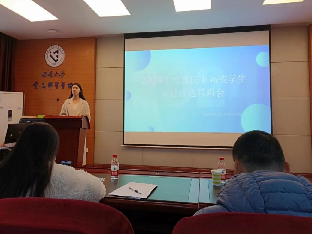 在39教215室举办了重庆市高校学生先进评选答辩会。本次会议由2021级辅导员夏雪主持并兼任评委,2020级辅导员杨希、2023级辅导员方令、2023级班主任孙康及各年级学生骨干出席担任评委。