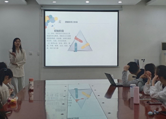 此外,杨希还讲授了开展团辅活动的技巧、方法和活动开展的注意事项,强调了活动前期的规划和准备要充足,并注意团辅位置安排等细节问题,以保证活动顺利进行;活动过程中要关注和照顾到每位同学的情绪,激发参与者的积极性;对于其他一些突发问题,如何进行应急处置等。最后,杨希对每个班级上交的心理团辅计划书做了点评,并给出了修改意见。