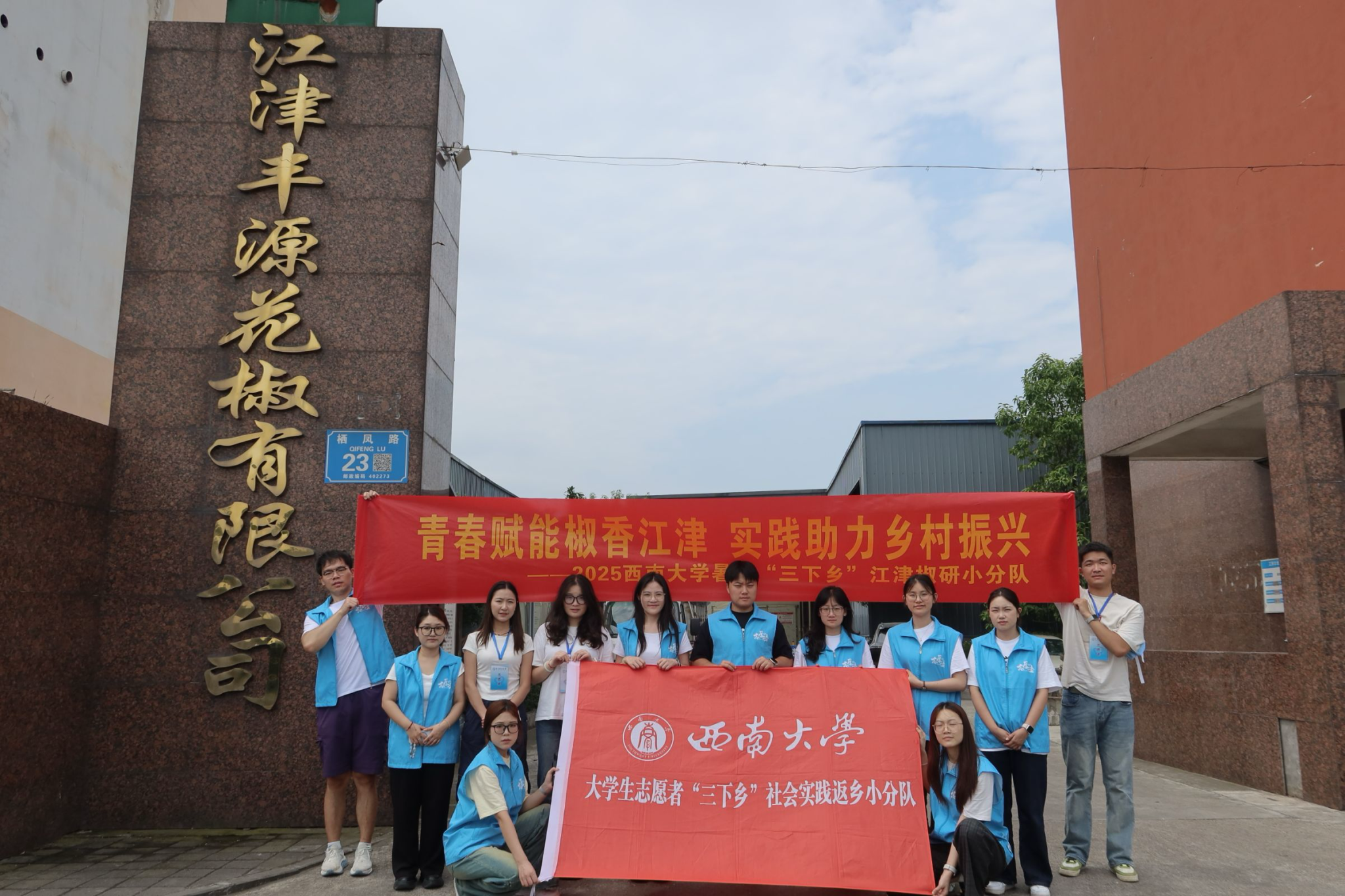 “江津椒研小分队”在指导教师张欢的带领下,赴重庆市江津区开展以“青春赋能椒香江津,实践助力乡村振兴”为主题的暑期“三下乡”社会实践。团队13名研究生循着椒香,走进企业车间、种植基地、行业协会与街头巷尾,全景调研花椒产业链,用专业所学为产业升级注入青春动能。