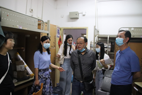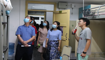 ,同时,新生们也热烈而真挚地欢迎老师们的到来。每到一个宿舍,吴书记张院长都会幽默风趣并饱含关心地与新生们亲切交谈,询问大家来自哪里,入学报到是否顺利,对新环境是否熟悉等情况,并叮嘱他们注意身体健康。期间,刘书记细心观察每个宿舍的住宿情况,表示博牛社区