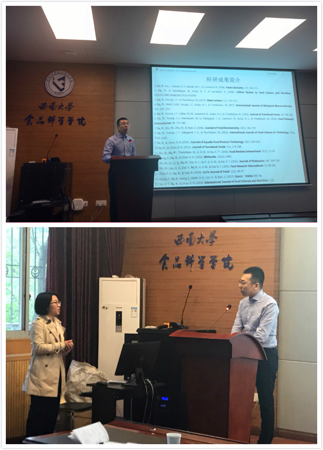 分论坛”在39教215会议室顺利举行。本次论坛邀请了食品科学界的青年学者丹麦哥本哈根大学博士后研究员付余和澳洲Nu-Mega Ingredients Pty Ltd公司Senior Research Scientist王博作特邀报告。本次论坛由博牛社区