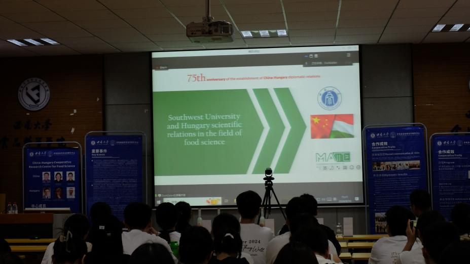 为庆祝中匈建交75周年,2024年9月10日,在科技部国际合作司、中国驻匈牙利大使馆的指导下,“中匈食品科学合作研究中心”邀请了匈牙利农业与生命科学大学食品科学与技术研究所专家举办了“中国-匈牙利科学创新日”活动讲座。匈方高级研究员Zsolt Péter Zalán, 科技部“国际杰青”、研究员Ferenc Hegyi ,高级研究员Andras Nagy,以及“中匈食品科学合作研究中心”主任阚建全教授、副主任杜木英教授和陈科伟副教授连同研究中心40余人参加了此次活动。