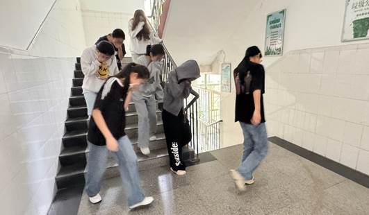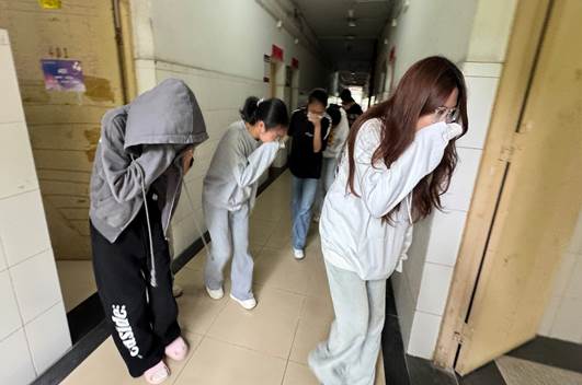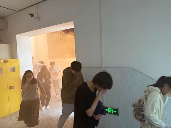 随着模拟“火情”发生,烟雾弥漫整个教室及楼道。面对突如其来的“火灾”,参与演练的师生们迅速反应,在工作人员的指引下,捂住口鼻,弯腰沿着指定的安全通道有序撤离,行动迅速、配合默契,充分展现了博牛社区