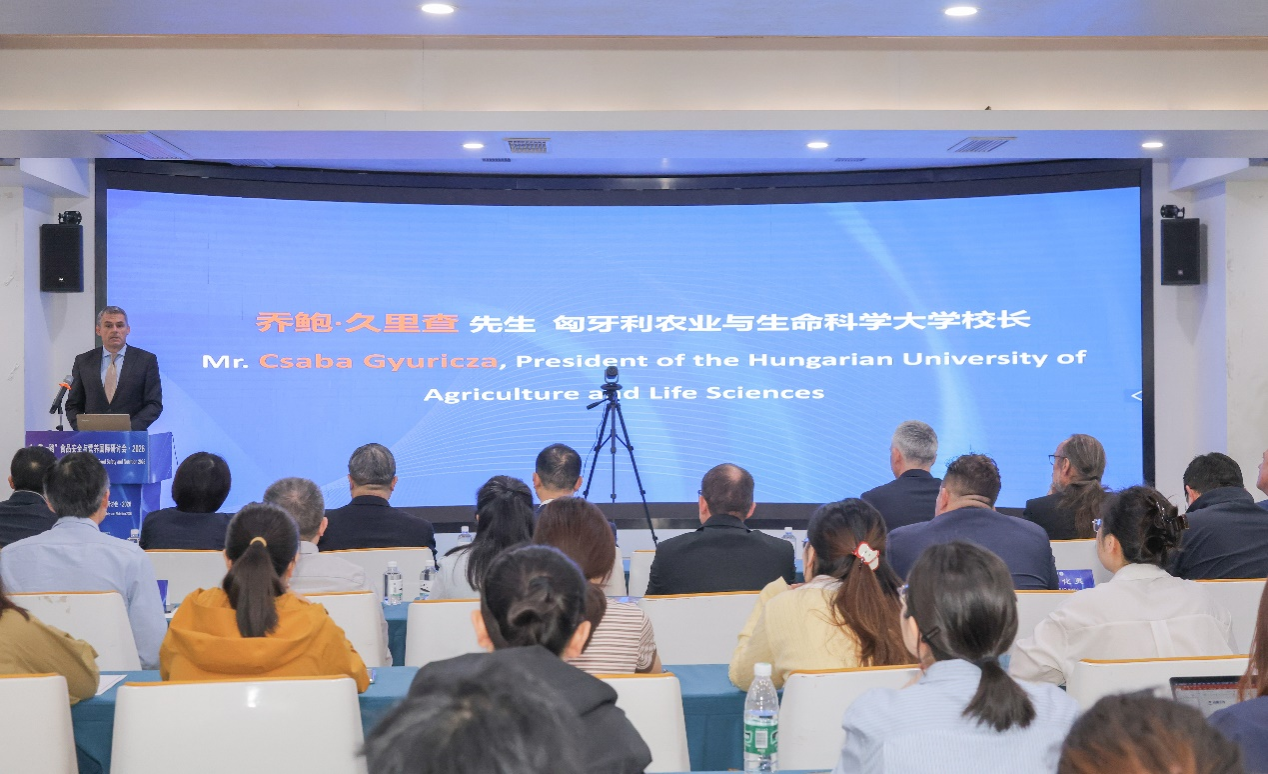 4月17日,2026“一带一路”食品安全与营养国际研讨会在西南大学召开。会议采取线上线下相结合的形式,来自国内外食品科学领域的70余名专家学者齐聚现场与云端,围绕食品安全与营养前沿议题展开深入研讨,共谋区域科技合作新路径。西南大学副校长廖晓衡,匈牙利农业与生命科学大学校长乔鲍·久里查(Csaba Gyuricza)出席并致辞。学校科学发展研究院、国际合作与交流处、博牛社区