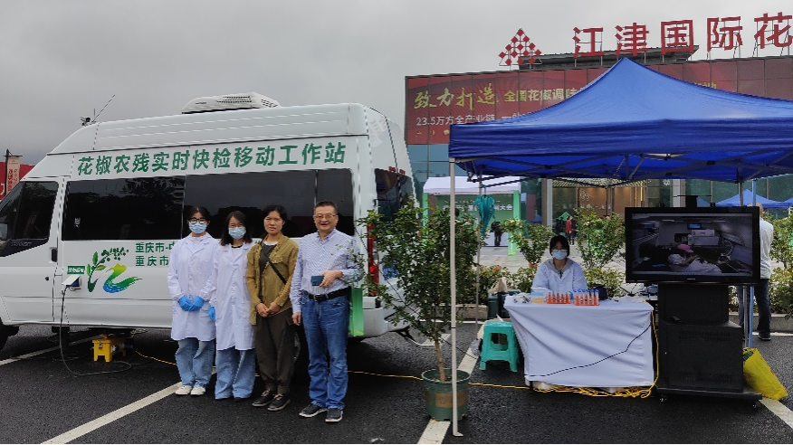 蔬菜花卉研究所、山东国投鸿基检测技术股份有限公司联合研发的花椒农残实时快检车载移动工作站于2024年5月27日至2024年6月4日在重庆市江津区国家青花椒标准化服务推广平台、国际花椒产业城以及江津区14个镇街开展流动测样,共检测鲜青花椒田间样品800余份,实时筛查400余种农药,设备运行良好,显著提高了鲜青花椒农残检测效率,对保障青花椒品质有重要作用。